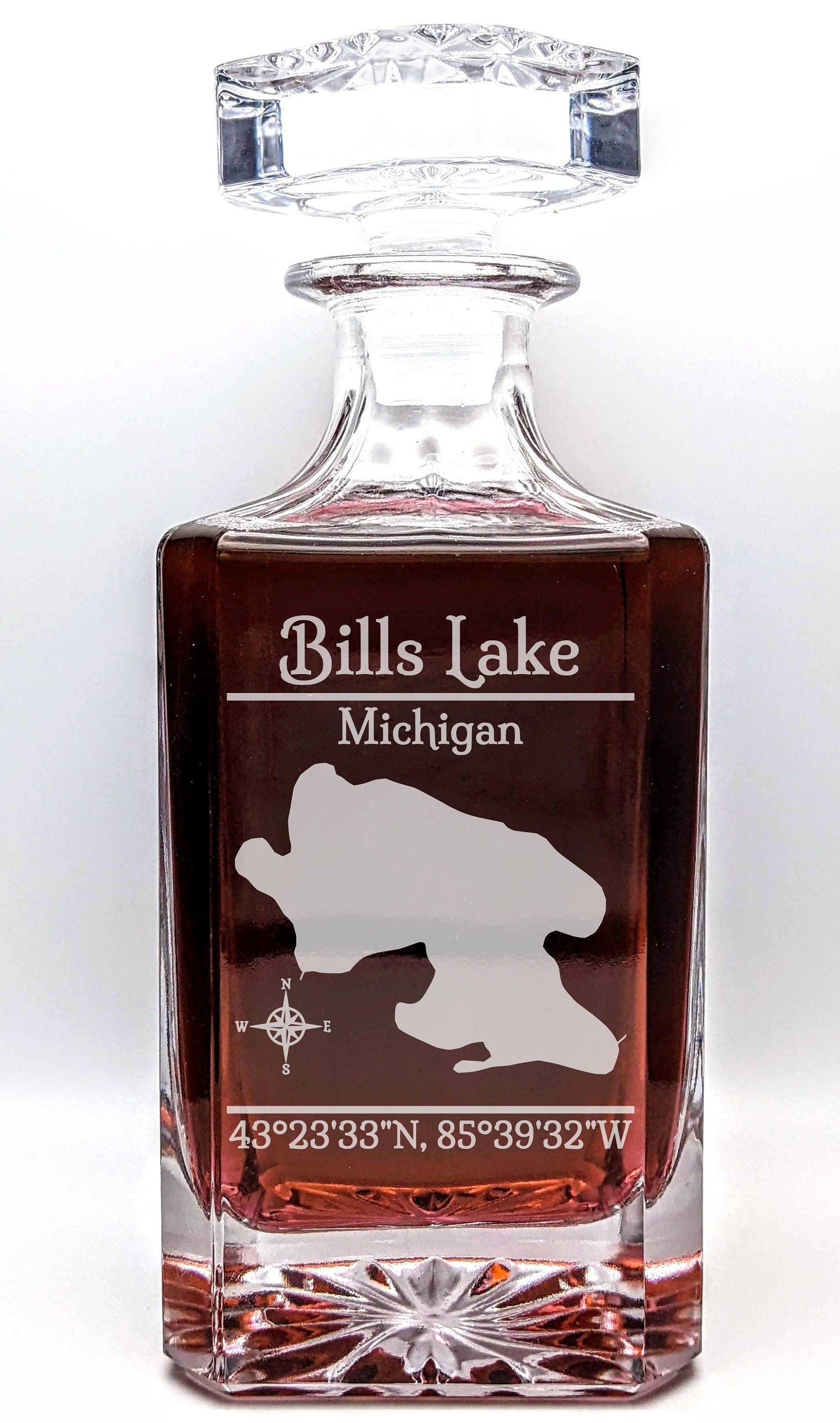 Store and Serve Up Whiskey, Bourbon, or Scotch with a Premium Bills Lake, Michigan Glass Decanter from Geo Gear Co