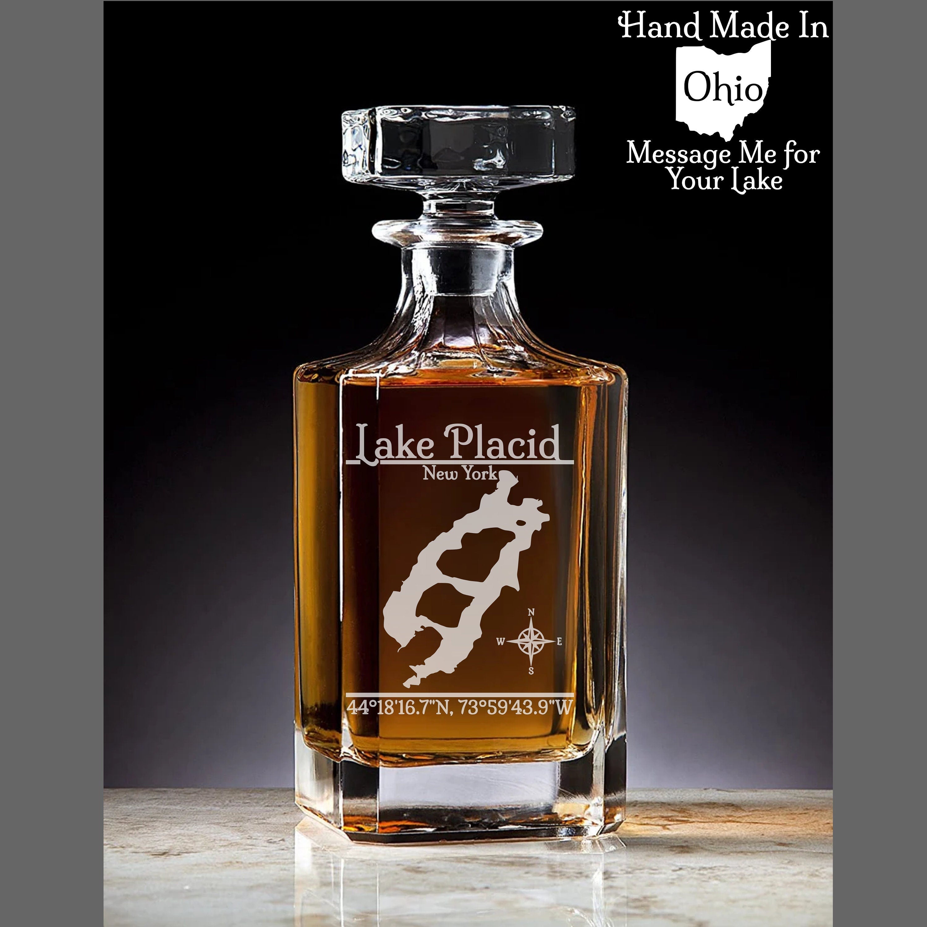 Lake Placid | New York | Decanter Set | Barware | Lake life Gift | Lake Decanter | Bourbon Lover Gift | Housewarming Gifts