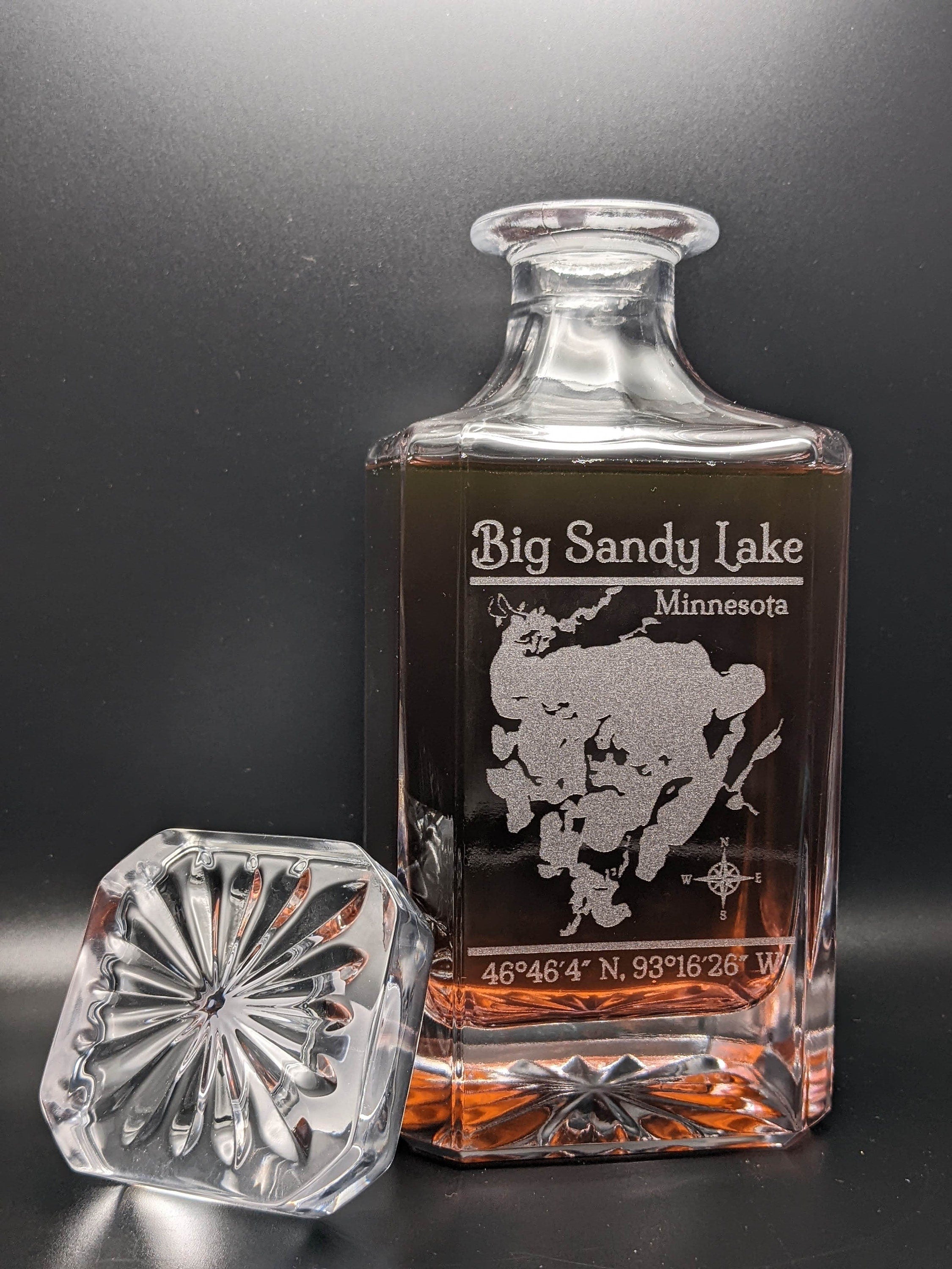 Choose a custom etched whiskey decanter, personalized to your preferences, including the option to etch your favorite lake. Additional customization options are available for a fee - simply send us a message. Experience our fast shipping and excellent customer service.