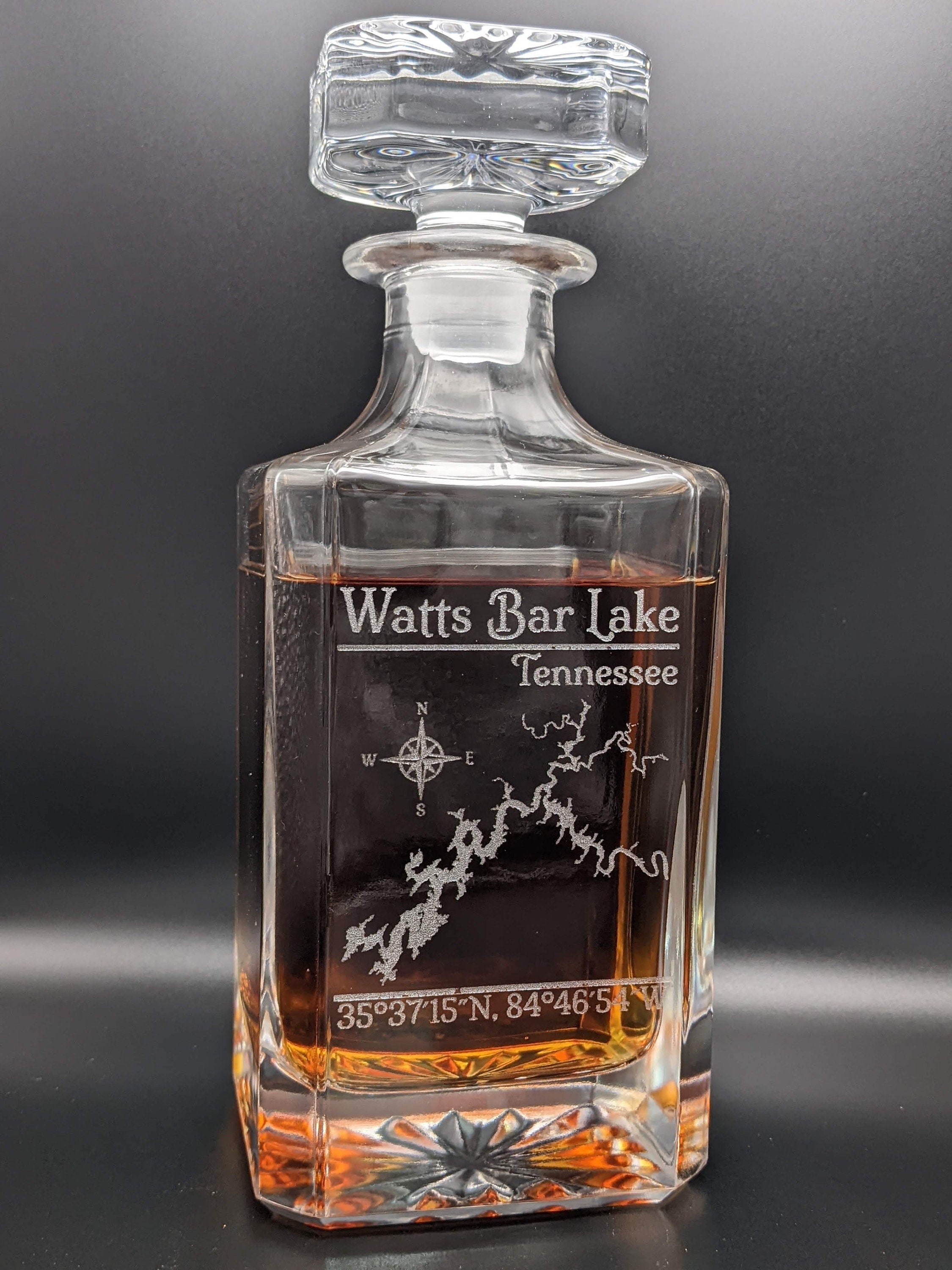 Choose a custom etched whiskey decanter, personalized to your preferences, including the option to etch your favorite lake. Additional customization options are available for a fee - simply send us a message. Experience our fast shipping and excellent customer service.